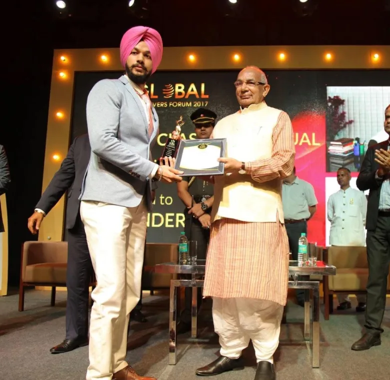 MD Urminder Singh receiving award for most promising entrepreneur.